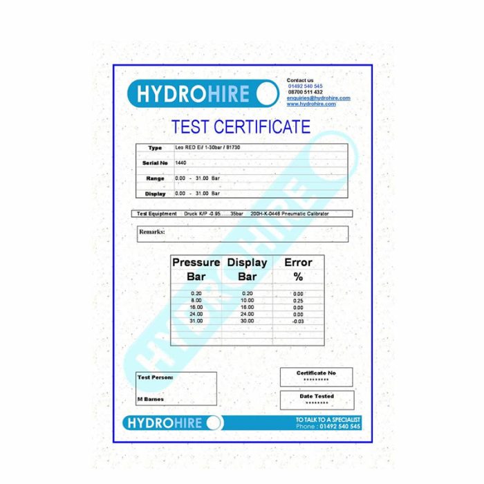 Using our specialist equipment we are able to certify test gauges fromĀ 0 to 30 bar